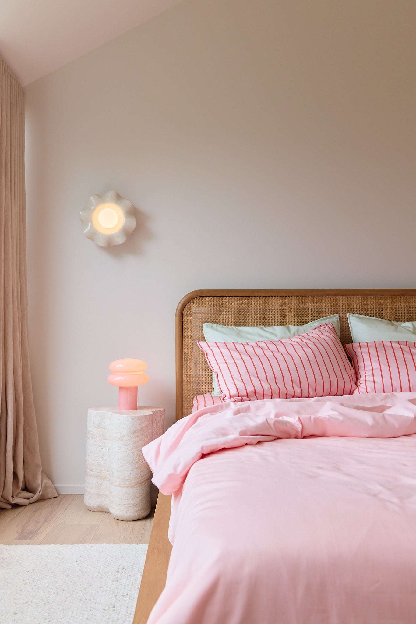 Raspberry Stripe: pairs a soft blush pink base with bold raspberry stripes for a look that’s both sweet and striking. It’s the perfect balance of gentle tones for sleep spaces with a playful burst of colour that makes bedtime feel a little more fun.